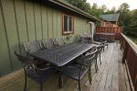 Bedroom 1: 1 King, Main Level Master, Amish canopied twig bed, Private Bathroom with Jacuzzi tub, access to deck & views!