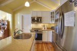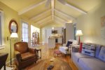 Upon arrival you will be greeted by captivating curb appeal with impeccable landscaping and a wrap around covered porch.  The rockers provide a perfect place to relax in our cool mountain air.  Just one block from Main Street you are not far away from our unique shops and award winning restaurants.  Rainy or snowy day? No problem…the Post House has a very comfortable living area with a gas log fireplace, flat screen TV, wifi, and a dvd player. This home has no stairs to enter and everything is all on one level!